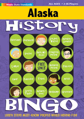 Learn state history facts while having fun! The game includes 36 different Bingo cards, colorful cover-ups, answer mat for quick easy check, instructions for 10 fun and educational ways to play, fact cards, and funny reward cards. Get the matching Geography and Biography Bingo cards for 150 different Bingo games.