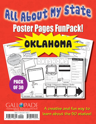The All About My State-Oklahoma FunPack (Pack of 30) is a 4-page booklet that includes 30 activity sheets. The front of the booklet includes state maps where students identify major cities, rivers and create physical symbols for physical features. The 11” x 17” inside includes drawing the state symbols including the state flag, animals, flower, and bird. Students will write the super state stats including statehood date, capital, governor, population and more. Students will write or draw three events for your state history to create a timeline. On the back, students will draw important crops, businesses, sports, thoughts about Oklahoma and more.