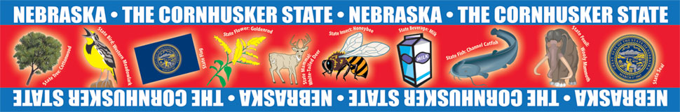• Each full-color border features the Nebraska official state tree, bird, flag, seal, and other symbols